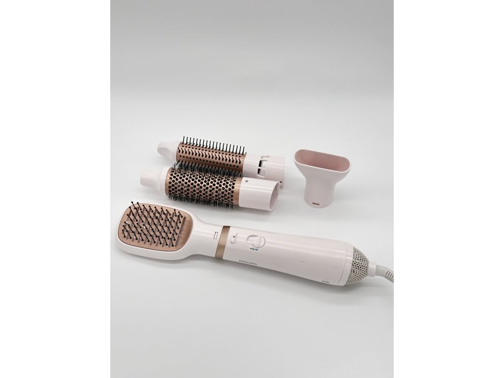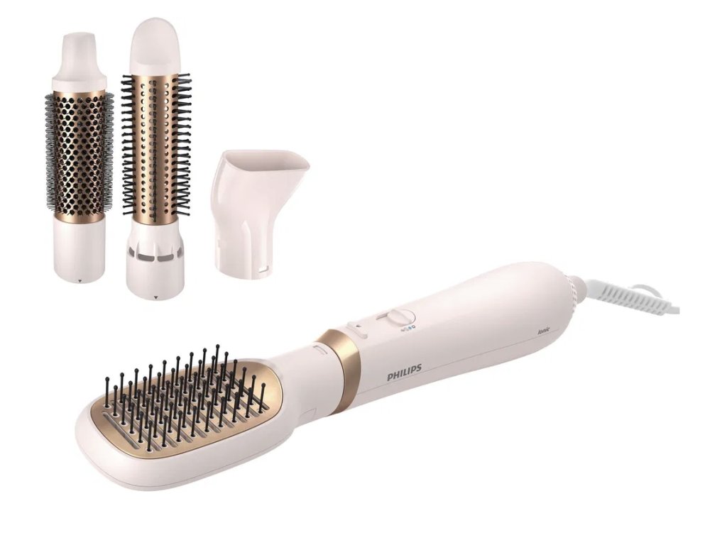 Šetrný kulmofén Philips Series 3000 vaše kadeře upraví do požadovaného stylingu během okamžiku, vlasy totiž vysouší a tvaruje v jednom kroku. 4 nástavce, které jsou součástí balení, nabízí nespočet různých možností. S 38mm kartáčem vytvoříte perfektní objem a elegantní vlny, 30mm kartáč s vysouvacími štětinami je ideální pro snadné tvarování účesu, zúžený koncentrátor vzduchu se hodí pro vytváření drobných detailů účesu a s plochým kartáčem můžete vlasy uhladit a narovnat. Povrch kartáčů je navíc napuštěný vyživujícím arganovým olejem, díky kterému budou lépe klouzat po vlasech bez zacuchávání. Během používání na vlasy působí záporné ionty, které vyhlazují vlasové kutikuly, dodávají jim lesk a zamezují vzniku statické energie. K dispozici jsou 3 nastavení teploty. Kulmofén má extra dlouhý kabel pro snadné používání.